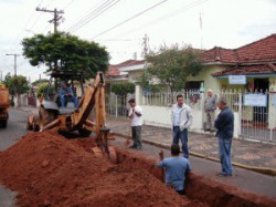 Troca de encanamento pela calçada - Rua José Teixeira Vilela Pai